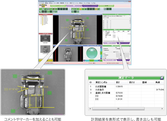 免費(fèi)提供的專用軟件ShuttlePix Editor通過該軟件,可以對(duì)拍照后的得到的圖片進(jìn)行簡(jiǎn)單測(cè)量,對(duì)合成的EDF圖像進(jìn)行斷面圖分析。