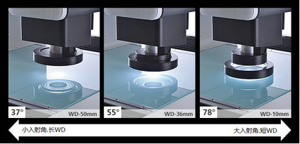 類型1、2和3配有8段LED內(nèi)外環(huán)形照明器,能夠提供最佳照明條件,清晰呈現(xiàn)模糊的邊緣。您可以從8個照明器段的任意方向選反37度、55度、和75度這三個斜角之一,還可以組合使用任意照明器段以及使用任意光強度。