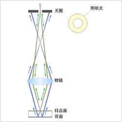 將專(zhuān)用物鏡與環(huán)形照明組合,不需要進(jìn)行被檢測(cè)物背面的防反射處理,就可測(cè)定最薄0.2mm的反射率*。*使用40×物鏡時(shí),在本公司的測(cè)定條件下進(jìn)行測(cè)定。