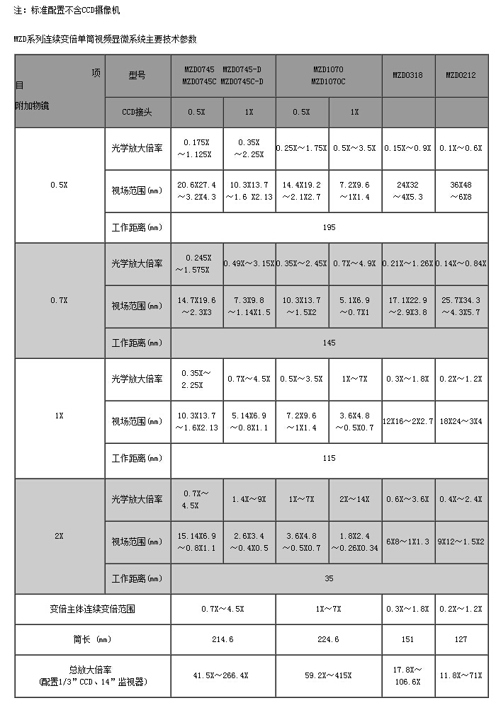 ● 有多種倍率主機(jī)、各種輔助光源和底座可選擇